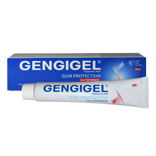 The presence of hyaluronic acid in the formula of the GENGIGEL® GUM PROTECTION TOOTHPASTE makes this product particularly suitable for persons suffering from gingivitis and with irritation of oral cavity tissues, like those suffering from periodontal diseases (i.e. gingivitis, periodontitis) or who have undergone dental surgery.
